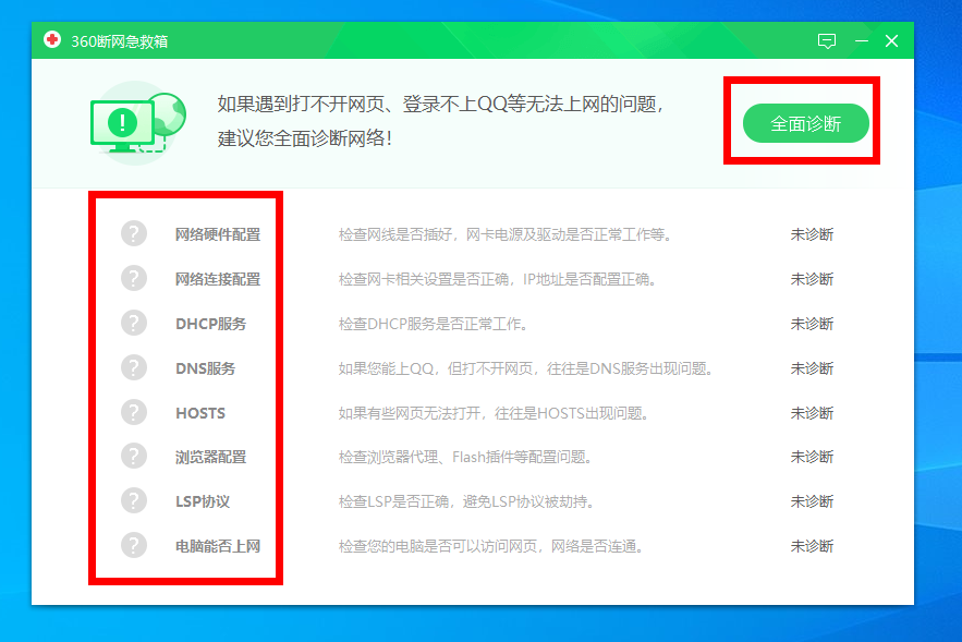 使用流程简单到无需任何技术基础。启动后点击 “全面诊断”,工具会自动完成所有检测项目,若存在问题,会清晰标注提醒,不用自己费力排查。检测完成后,只需点击一个按钮就能启动修复,全程无需手动修改任何设置,修复完成后网络就能恢复正常,哪怕是对电脑操作不熟悉的人,也能轻松上手。